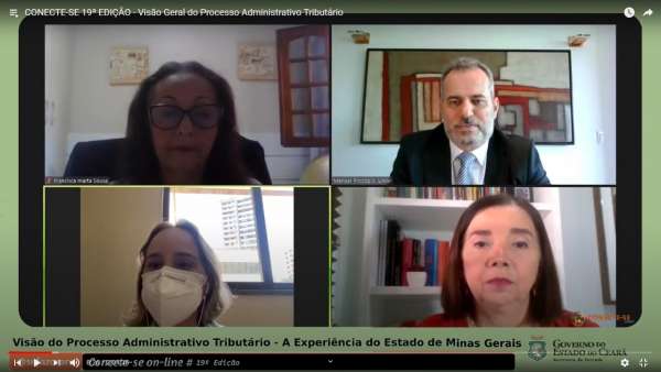 A Secretaria da Fazenda do Ceará (Sefaz-CE) promoveu, nessa quinta-feira (20/05), a 19ª edição do projeto Conecte-se, desta vez com o tema “Visão Geral do Processo Administrativo Tributário – A Experiência do Estado de Minas Gerais”. Para falar sobre o assunto, foi convidado o assessor especial do secretário de Estado de Fazenda e auditor fiscal da Receita Estadual de Minas Gerais, Manoel Procópio Júnior. O webinário reuniu cerca de 120 pessoas e foi transmitido pelo canal da Sefaz no YouTube.