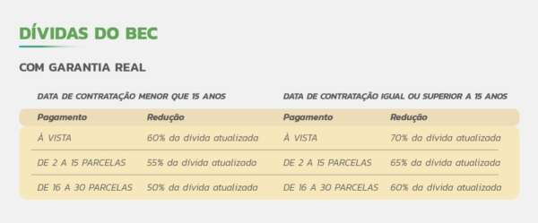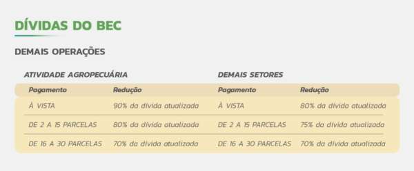 O Refis ainda prevê condições especiais para dívidas decorrentes de operações de crédito efetuadas pelo Banco do Estado do Ceará (BEC).