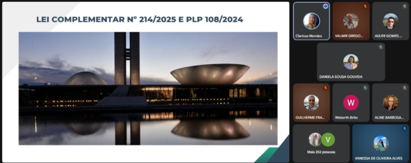 A palestrante Clarissa Mendes tratou da Lei Complementar n.° 214/2025, que inclui normas gerais dos novos tributos IBS e CBS (Contribuição sobre Bens e Serviços). Ela também abordou o Projeto de Lei Complementar n.°108/2024, responsável por definir as regras do Comitê Gestor do IBS. Sobre a coordenação de grupos de regulamentação e operacionalização do Simples Nacional, Clarissa afirmou que “tem sido um trabalho árduo, mas gratificante”.